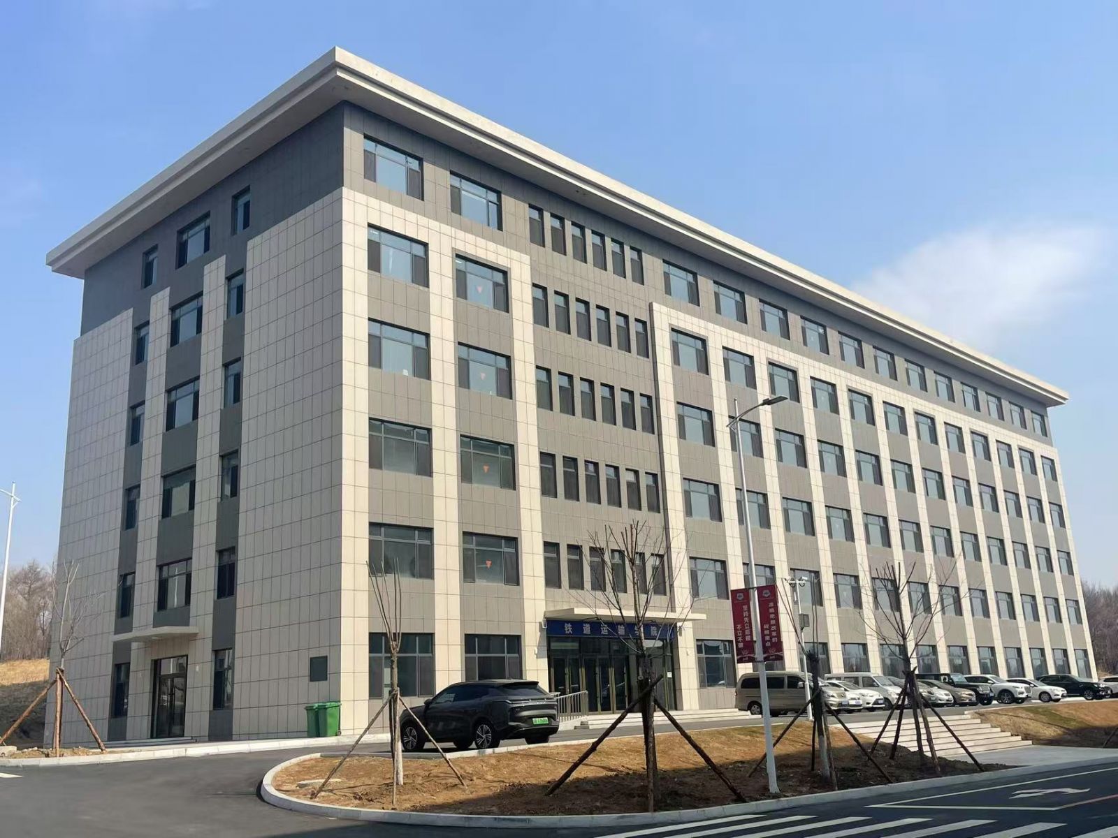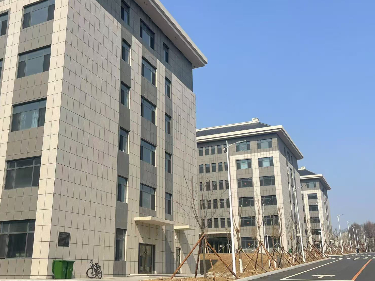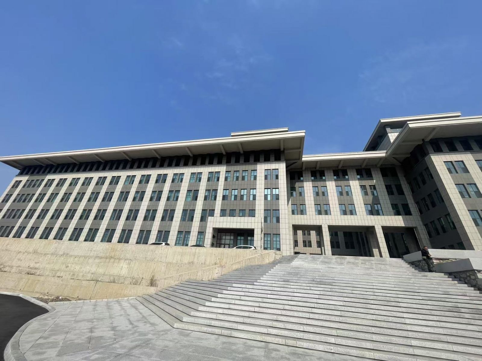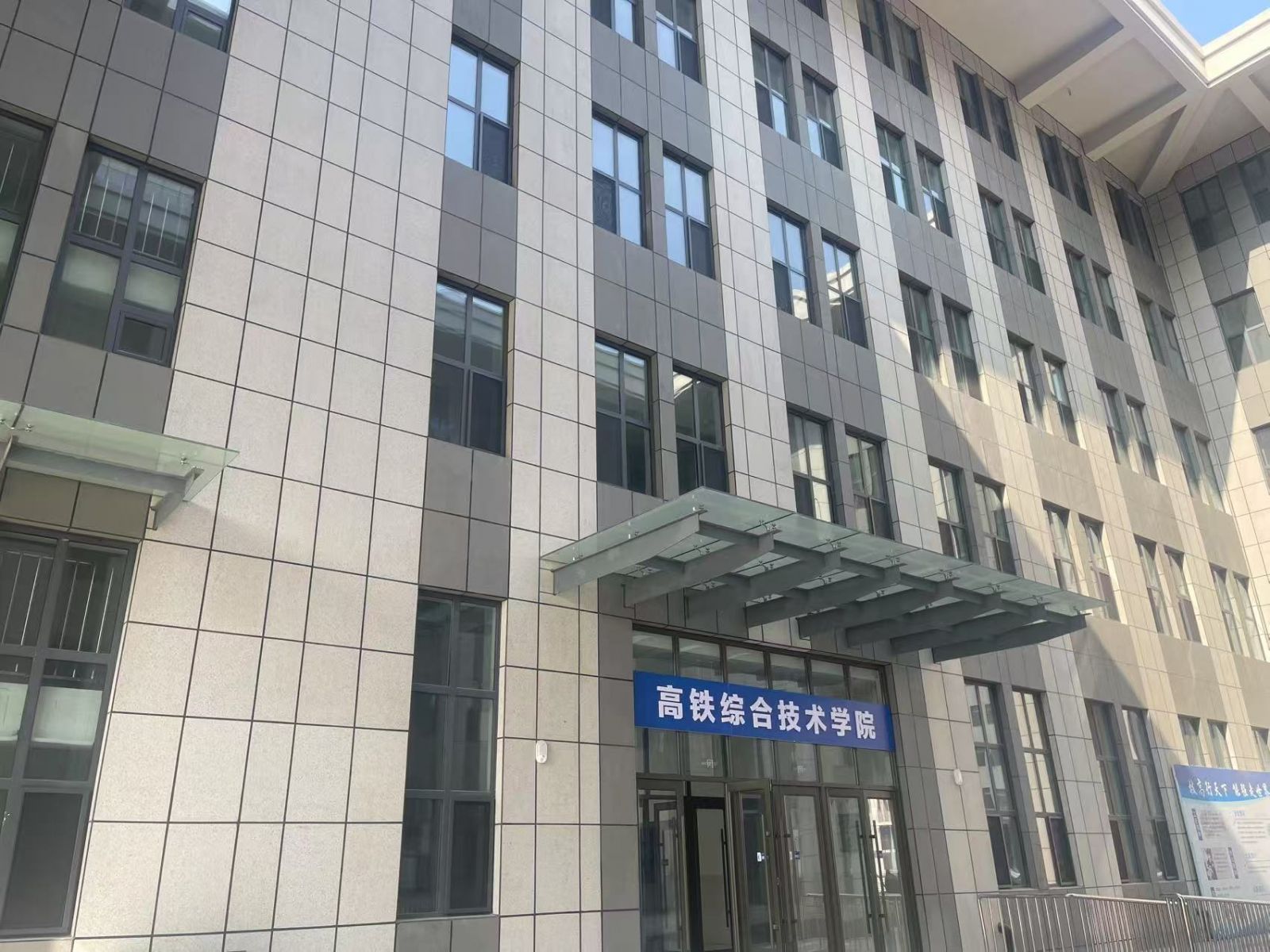 學院外墻使用芝麻灰與白麻陶瓷薄板