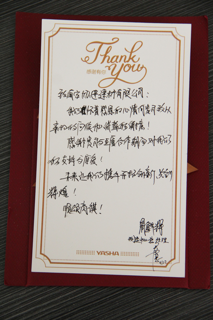 南安協進建材有限公司被杭州亞廈股份評選為優秀合作伙伴
