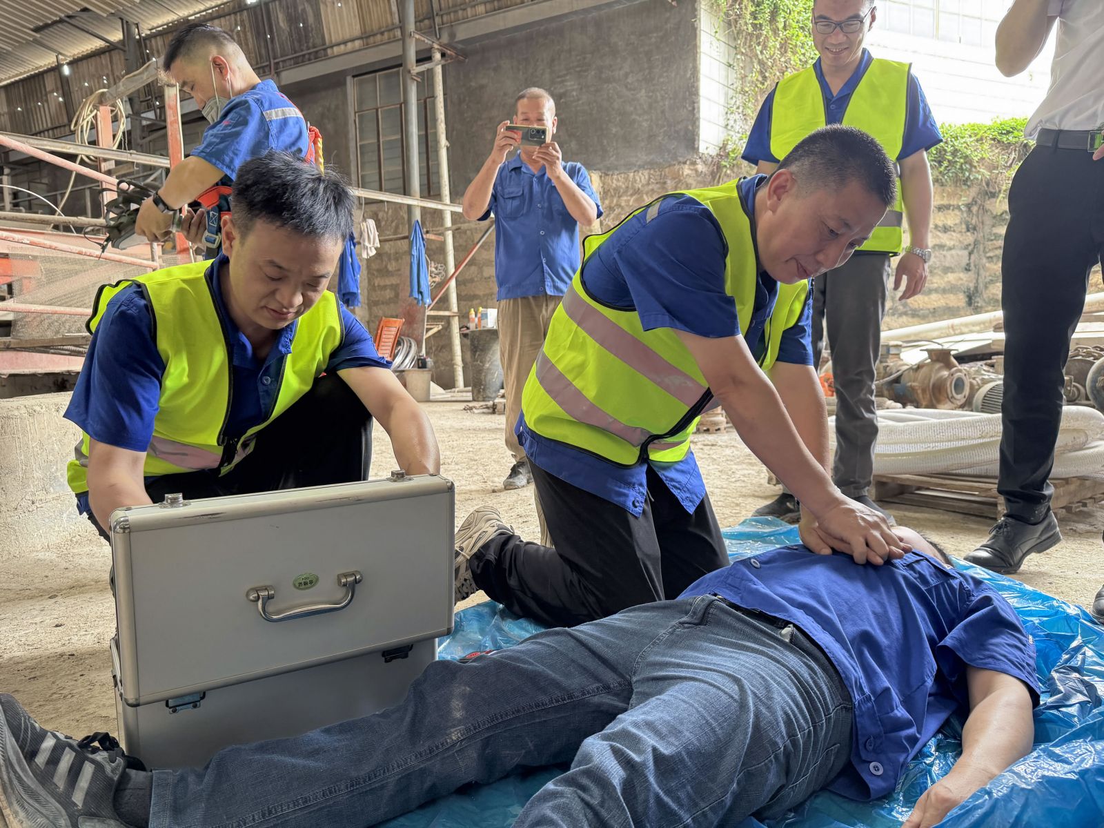 6月19日協(xié)進(jìn)陶瓷舉行安全生產(chǎn)應(yīng)急消防演練