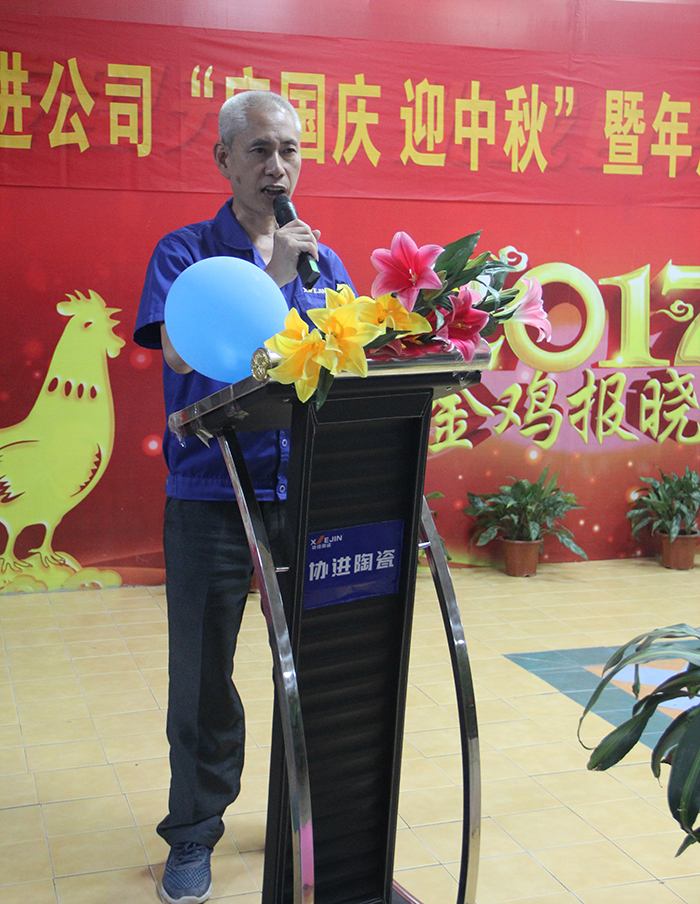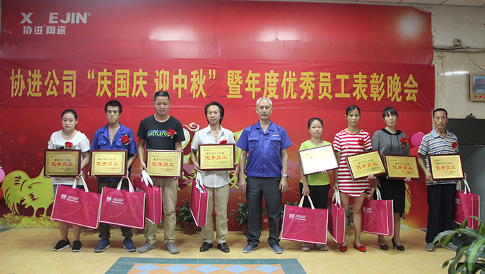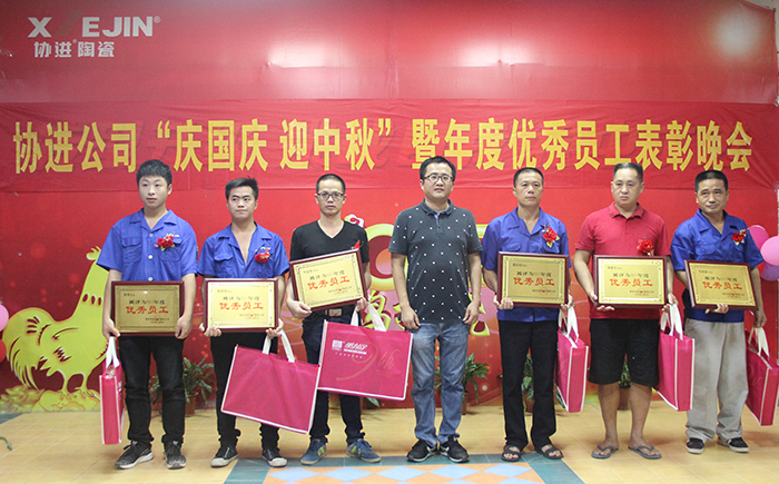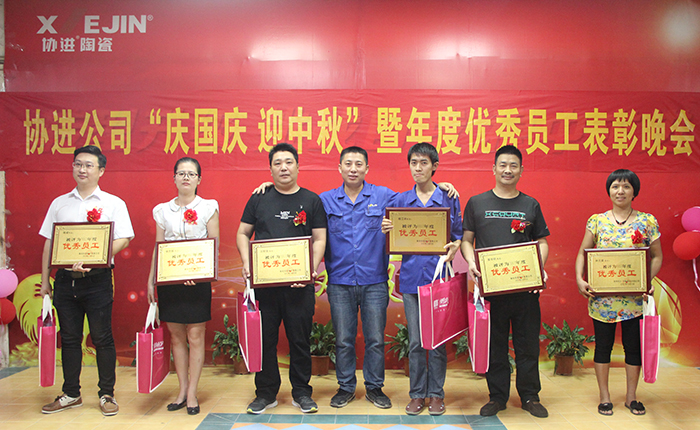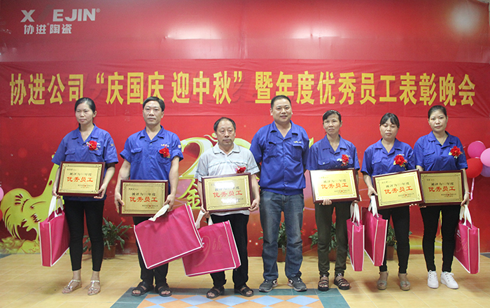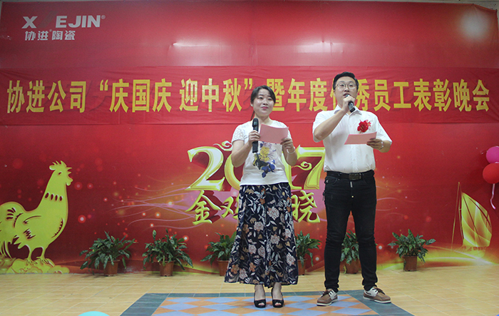 9月29日晚,金秋送爽,星空璀璨,協進廠區,華燈輝映,彩旗飄揚。為了慶祝即將到來的中華人民共和國68周年華誕,喜迎中秋佳節,同時為了表彰先進、樹立榜樣,鼓勵“人人爭當模范”的工作激情,弘揚“正品、精工、盡美、至善”的企業理念,倡導“攜手創輝煌,創新求卓越”的協進精神,協進陶瓷2017年歡度國慶喜迎中秋暨優秀員工表彰文娛晚會在公司禮堂隆重舉行。