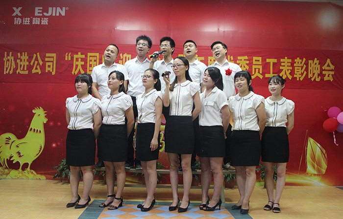 表彰結束后,制造部同事們的《歌唱祖國》大合唱拉開了協進員工能文能武的文娛演出序幕,唱響了祝愿祖國繁榮富強,祝愿協進公司再創輝煌,祝愿協進家人生活美滿!